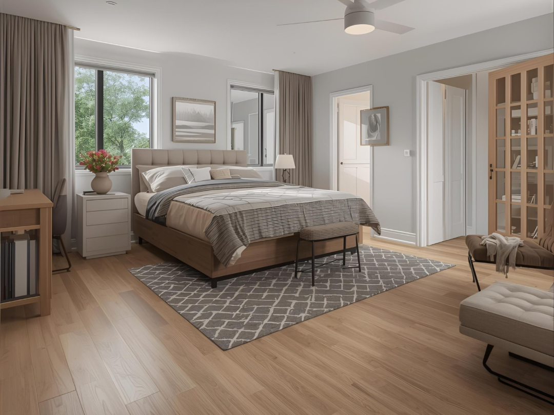 It’s versatile and can be installed in living rooms, bedrooms, hallways, and even over concrete subfloors — areas where solid hardwood may not perform as well.